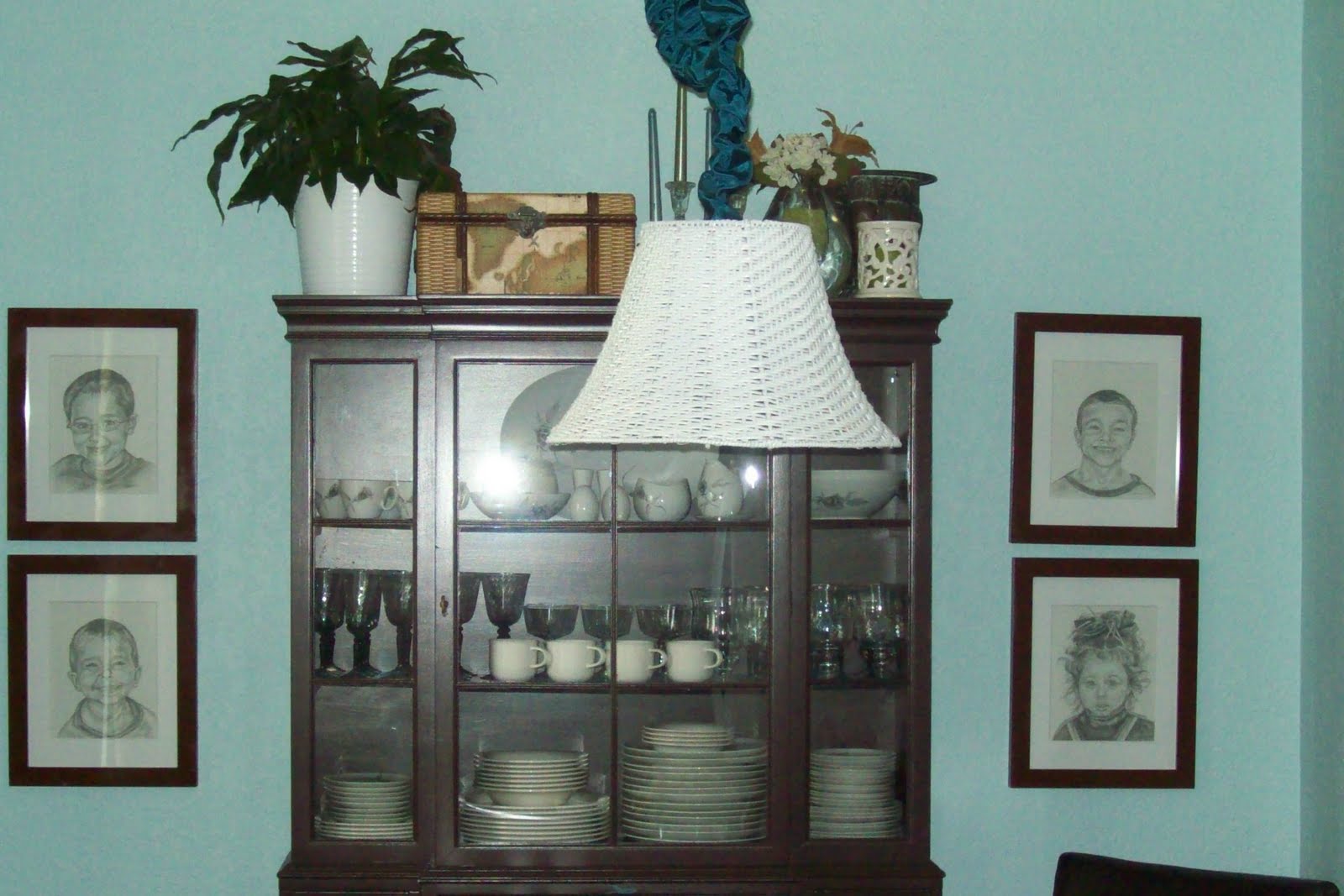 I'll talk about no. 6 in a sec. First, my mom had the art teacher at her school draw these pictures of my children for us for Christmas two years ago. I love them. Sometimes I go temporarily insane and put something else in these frames, but luckily it is only temporary.I'm one of those people that loves symmetry and balance so I love having these pictures on either side of my china cabinet. And putting the cabinet back on this wall makes the dining room feel bigger. I seriously can't remember why I didn't like it this way the first time. Must be more of that temporary insanity.